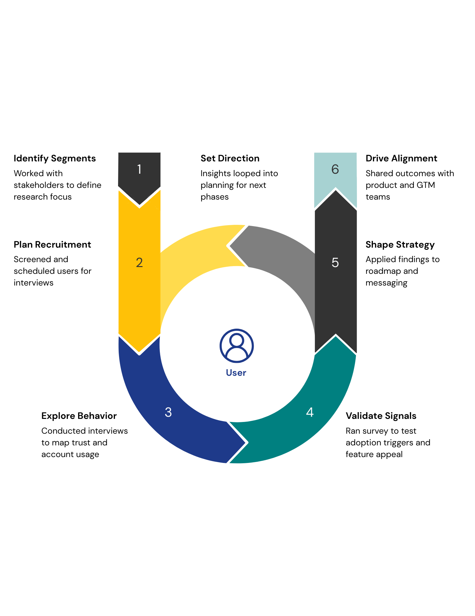 This work was woven into product planning alongside design, engineering, and go-to-market leads—ensuring results could be immediately applied to roadmap prioritization and messaging.